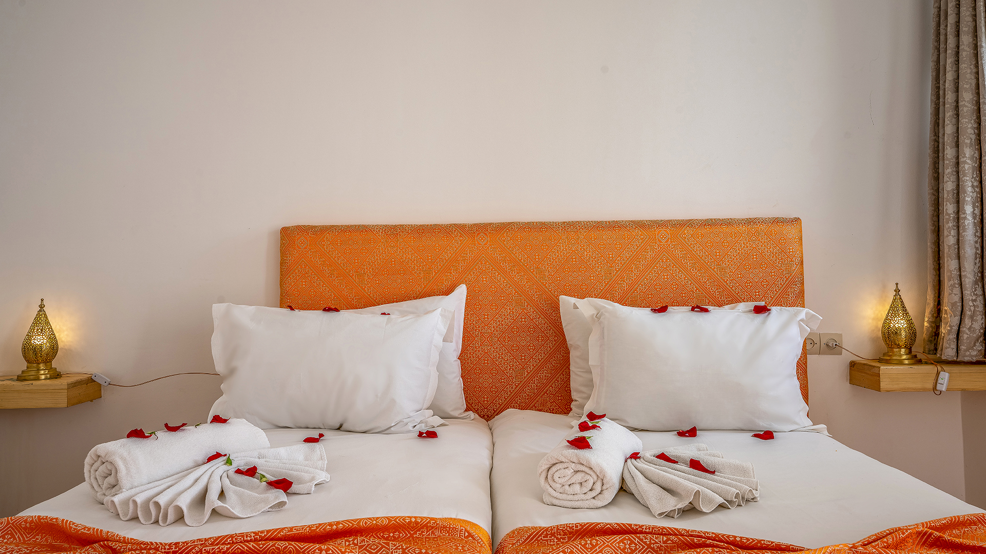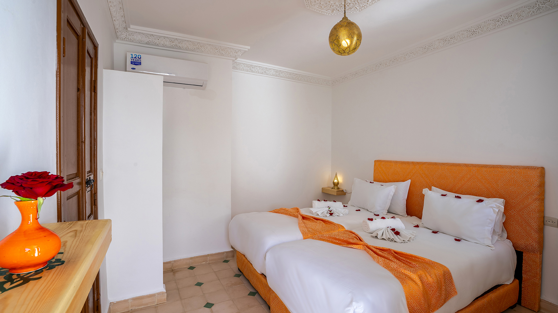 La chambre double/twin est équipée de la climatisation et d'une entrée privée, ainsi que d'une salle de bain privative avec une douche à l'italienne.